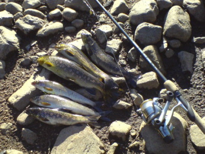 Att fiska från land med kast- eller flugfiskespö kan också ge bra fiskelycka.
