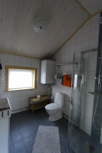 I samma hus har gästerna ett fint nytt badrum med tvättmaskin och en extra gästtoalett till sitt förfogande.